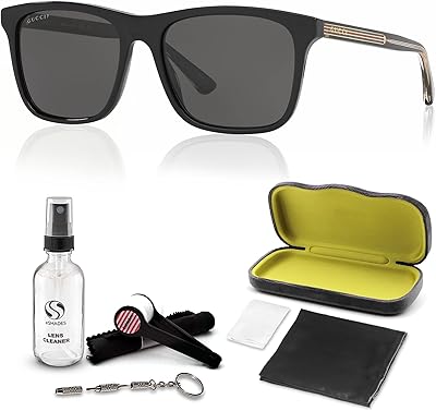 Gucci GG0381SN Lettering Logo Square-Shaped Polarized Sunglasses for Men – Includes Luxury Eyewear Kit – Black Frame with Gray Lens